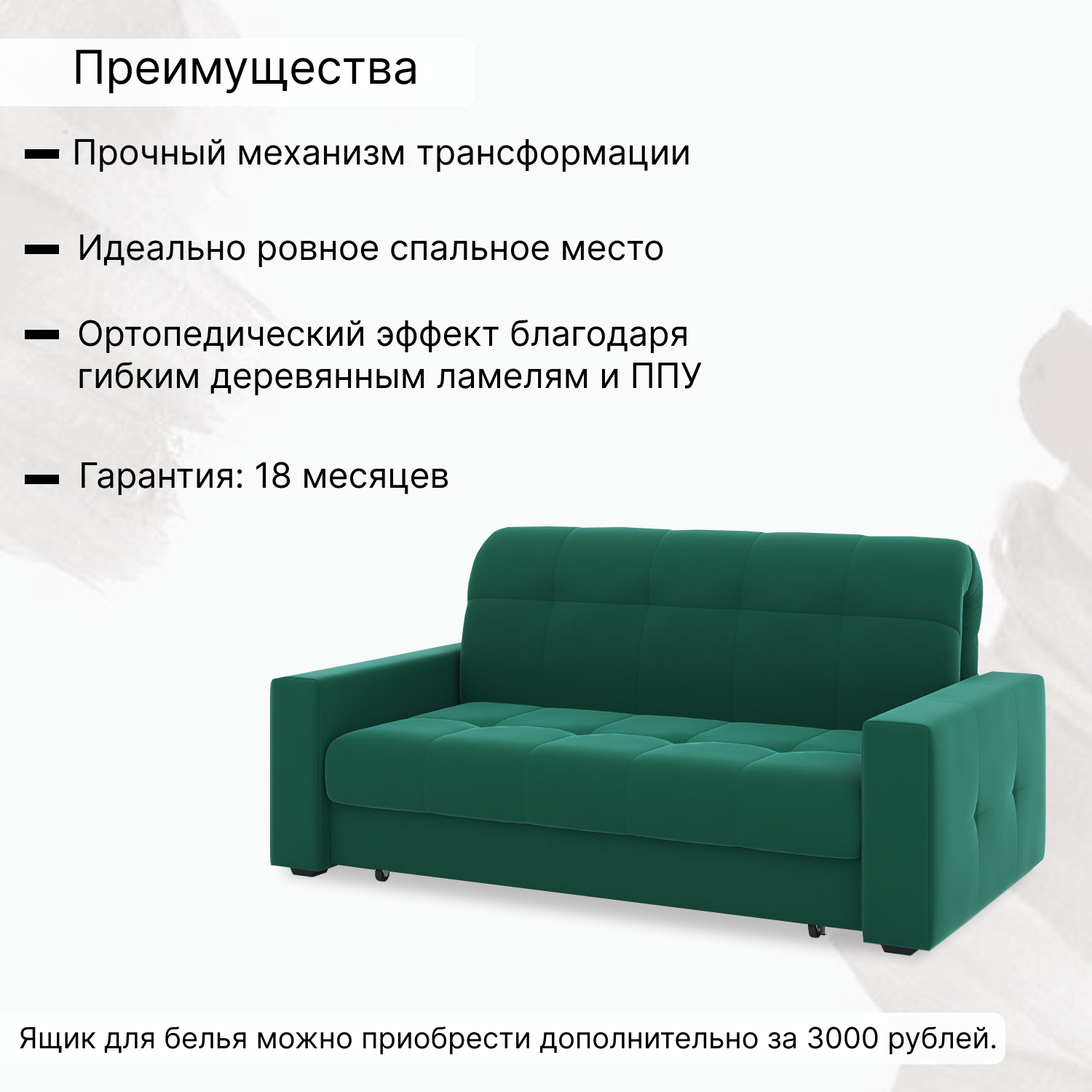 Ящик для белья: нет, но можно заказать за дополнительную плату. стоимость ящика 3000 рублей