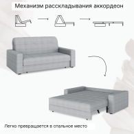Особенностью данной модели является механизм аккордеон. Благодаря ему, диван легко превращается в кровать, обеспечивая удобство и простоту использования. Размеры спального места составляют 180*200 см, что позволяет использовать его как полноценную кровать.