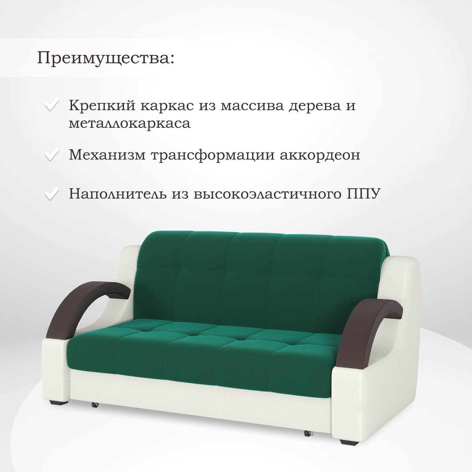 - простой, надежный, удобный механизм трансформации позволяет за несколько секунд превратить диван в удобное спальное место