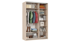 Лицевые элементы оформлены кромкой ПВХ толщиной 2 мм . Внутренние и скрытые детали защищены кромкой ПВХ толщиной 0,4 мм. Штанга для одежды расположена в левой части корпуса, выдерживает нагрузку до 22кг.