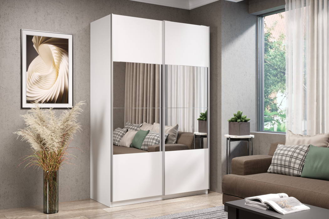 Шкаф-купе Smart 1622 2х дверный (фасады ЛДСП/зеркало) профиль серебро (Белый)