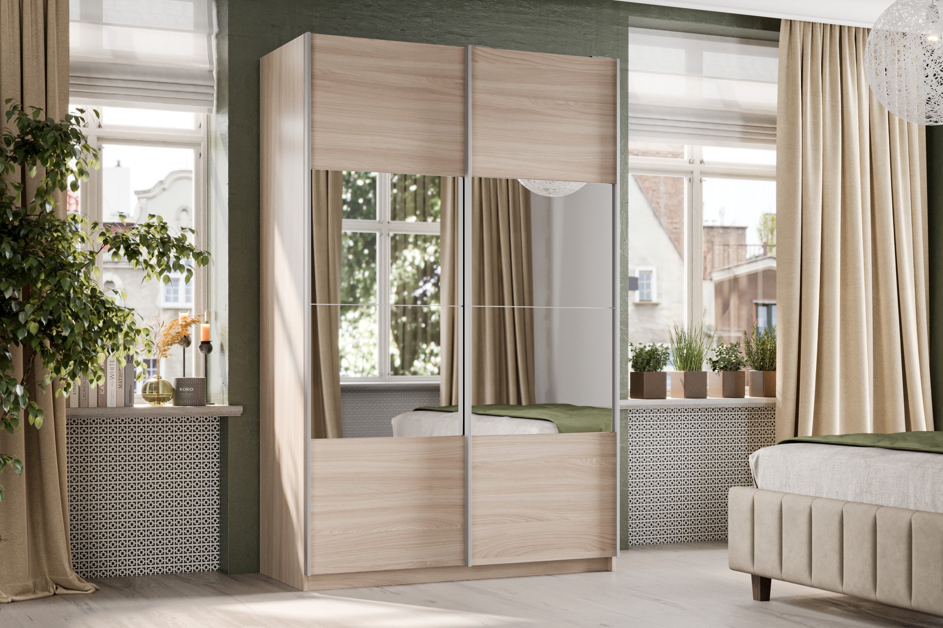 Отзывы о Столплит Шкаф-купе Smart 1622 2х дверный (фасады ЛДСП/зеркало) профиль серебро Ясень шимо светлый