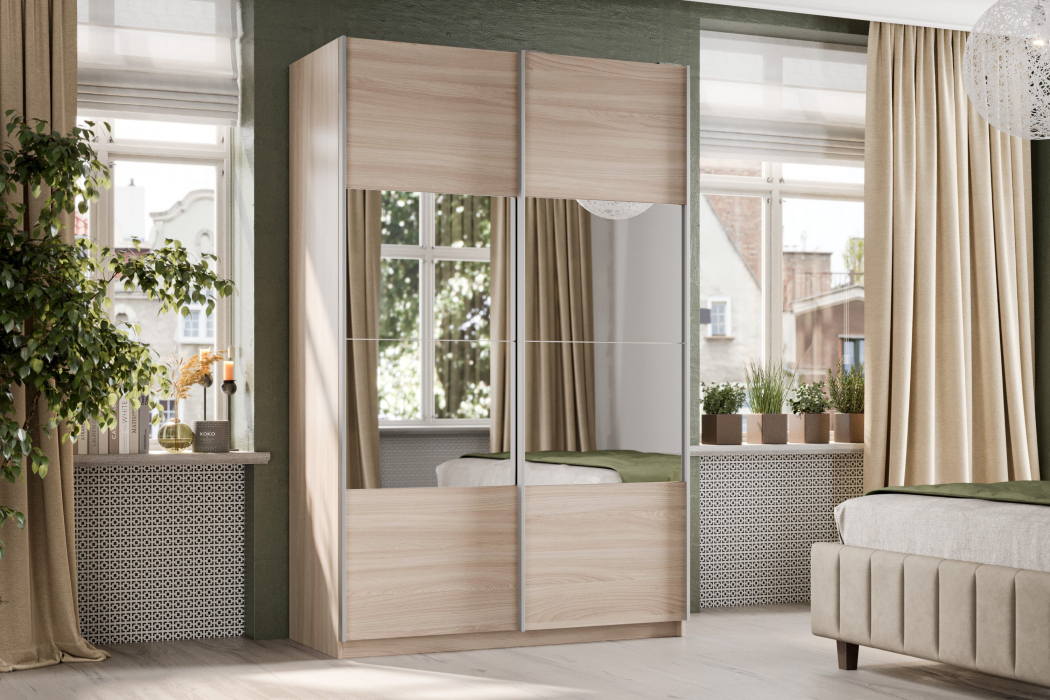Шкаф-купе Smart 1622 2х дверный (фасады ЛДСП/зеркало) профиль серебро (Ясень шимо светлый)
