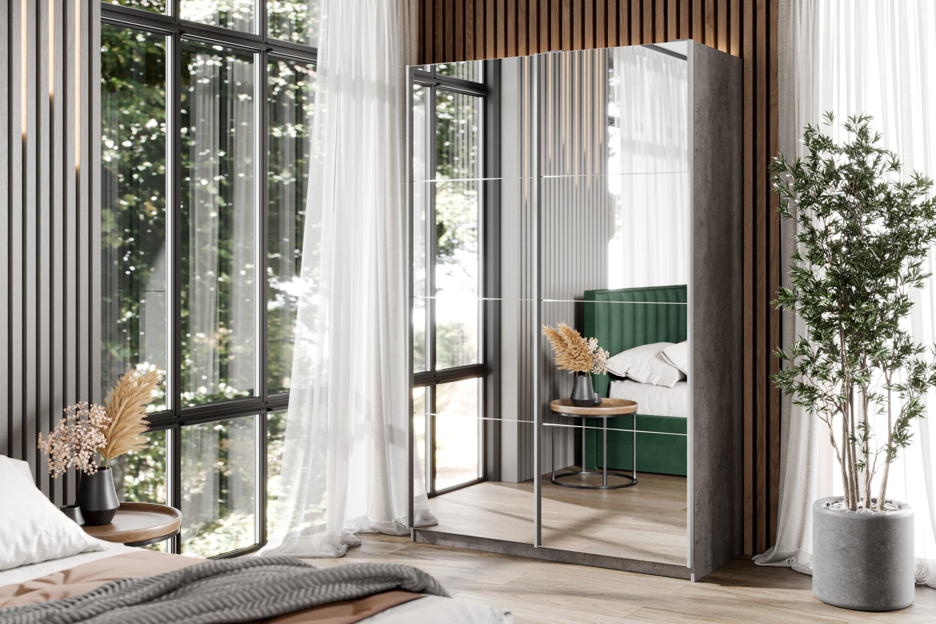Шкаф-купе Smart 1624 2х дверный (фасады зеркало) профиль серебро (Бетон)