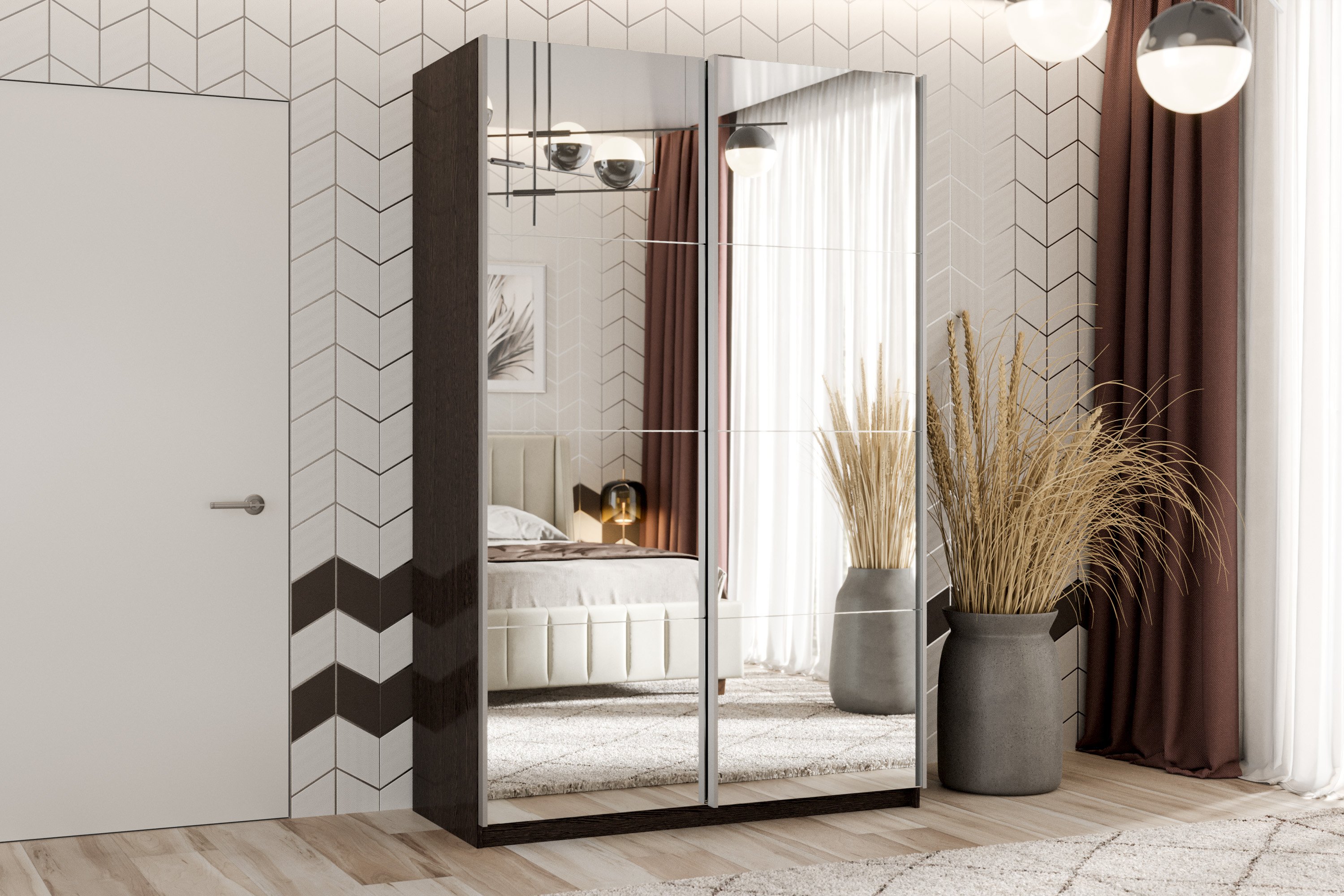 Шкаф-купе Smart 1624 2х дверный (фасады зеркало) профиль серебро (Венге)
