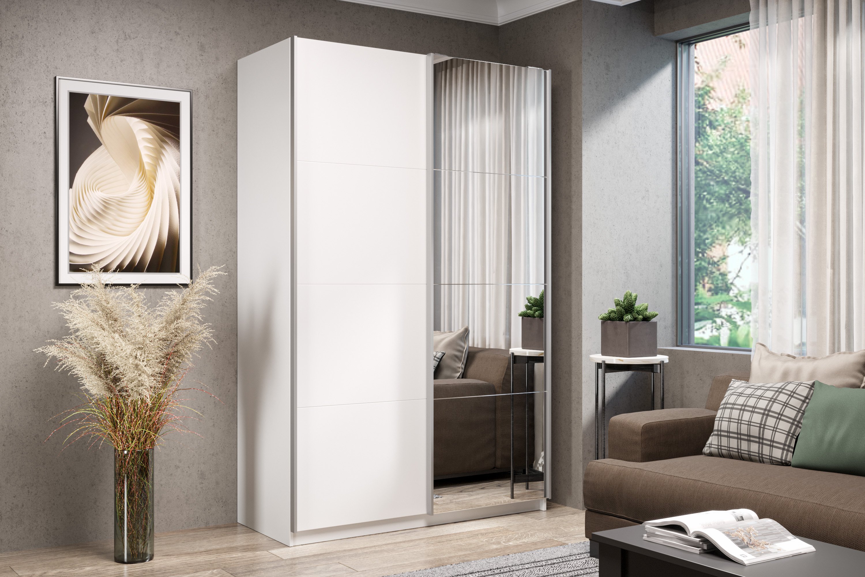 Шкаф-купе Smart 1624 2х дверный (фасады ЛДСП,зеркало) профиль серебро (Белый)