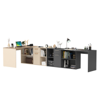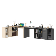 Универсальная сборка позволяет менять стороны расположения тумб и полок, что облегчает интеграцию столов в интерьер любого помещения.