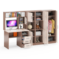 Уголок для школьника из стола с пеналами и платяного шкафа СК-9 создают гармоничный и функциональный комплект, который идеально подходит для организации рабочего пространства.