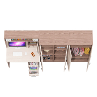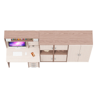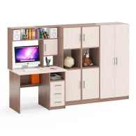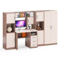 Все элементы мебели гармонично дополняют друг друга и составляют удобное рабочее место и вместительную систему хранения.