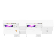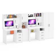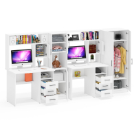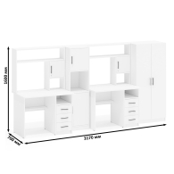 Каждый стол выполнен в классическом компактном варианте, оснащен удобной столешницей, надстройкой с нишей для монитора и тумбой с ящиками. Вместительная столешница легко разместит ноутбук или монитор с клавиатурой, оставляя достаточно места для учебных пособий и канцелярии. Под столешницей расположены две открытые ниши, которые предоставляют удобный доступ к самым важным предметам и место для системного блока. Столы не имеют универсальной сборки - справа у столов расположена тумба с тремя вместительными выдвижными ящиками, для хранения книг, канцелярии и деловых бумаг. Надстройка каждого стола с нишей под монитор диагональю до 27 дюймов (размер ниши 65х70х57 см) обеспечивает безопасность техники и организацию пространства для комфортной работы. Верхняя полка и боковые ниши надстройки отлично подходят для хранения справочников, учебников и других необходимых вещей.