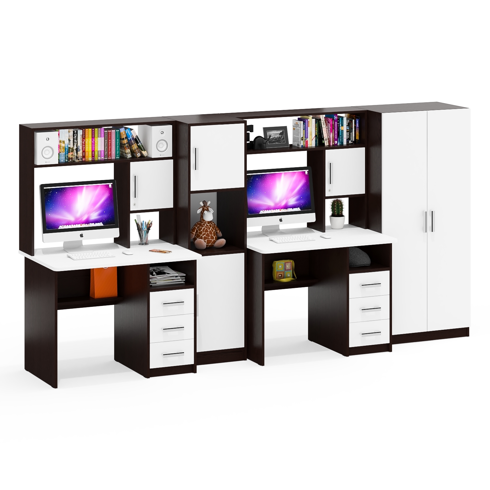 Размещение модулей друг относительно друга Вы выбираете по своему вкусу. Столы, шкаф и пенал могут поменяться местами по Вашему желанию.