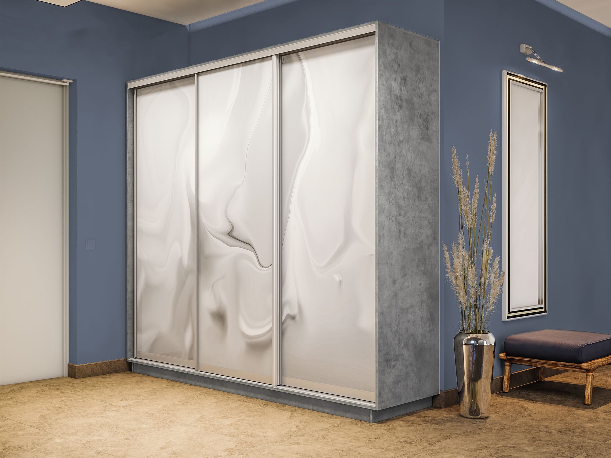 Отзывы о Столплит Шкаф-купе Экспресс 3-х дверный Фотопечать Шелк Стекла 210х60х240 Бетон