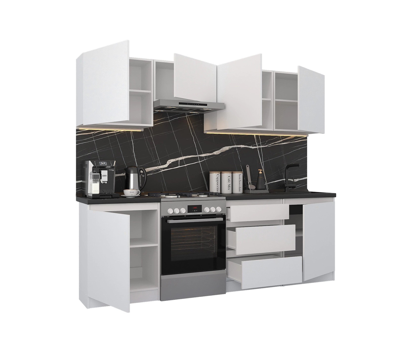 - Кухонный гарнитур Леон прямой 240 см, белый