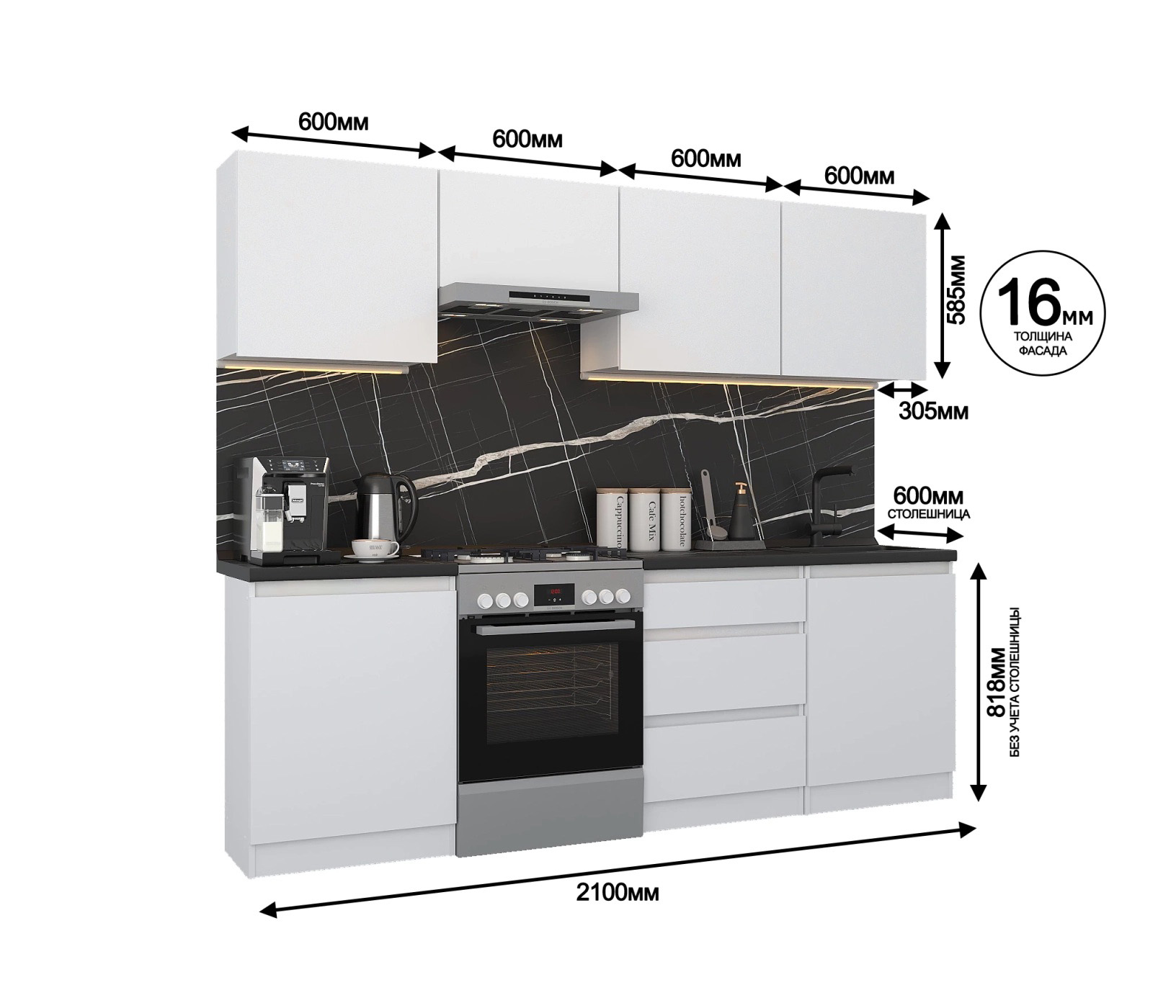 Кухонный гарнитур Леон прямой 240 см, белый Код 00000331074