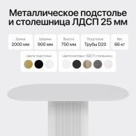 Стол овальный обеденный с металлическим белым подстольем 200*90*75 (Белый) Код I0000417831