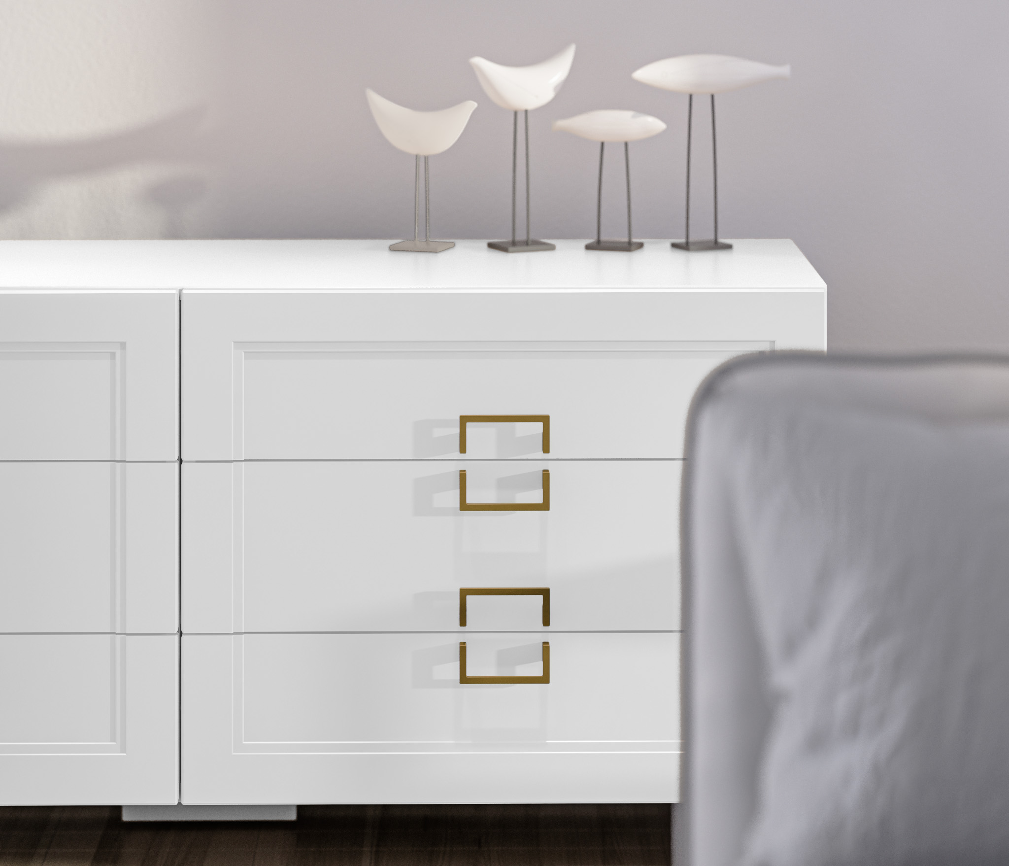 Золотистые ручки и ножки коллекции "Ассоль" добавляют неповторимый шик и изысканность, завершая образ тонким и стильным блеском. Эти акценты создают атмосферу роскоши и утонченности. Они играют роль визуального украшения, дополняя общий вид мебели и придавая ей особый шарм и элегантность.