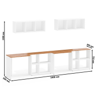 В комлектации 2 классические открытые навесные полки. Каждая разделена на 3 отделения вертикальными перегородками. Навесные полки могут крепиться горизонтально или вертикально, а также использоваться не только в качестве полки, но и как самостоятельный стеллаж, что добавляет вариативности в расстановке мебели.