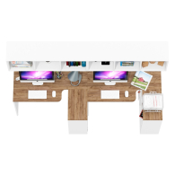 Место для учёбы двоих детей Лидер-8 из столов с навесными полками - современный и функциональный комплект, идеально подходящий для любого интерьера — это идеальный выбор для тех, кто ценит качество, стиль и функциональность.