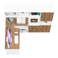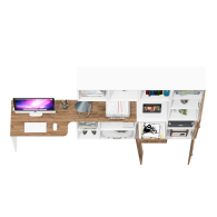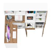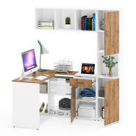 Комплектация включает стол трансформер письменный, полку открытую навесную, тумбу с ящиком и дверкой МД-3.15 пенал две дверки и ниша.