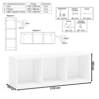 Классическая открытая навесная полка. Разделена на 3 отделения вертикальными перегородками. Навесная полка может крепиться горизонтально или вертикально, а также может использоваться не только в качестве полки, но и как самостоятельный стеллаж, что добавляет вариативности в расстановке мебели.