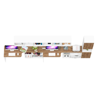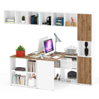 Комплектация включает два стола трансформера письменных, две полки открытых навесных и пенал две дверки и ниша.