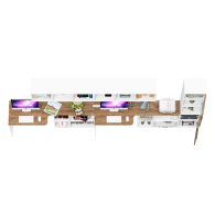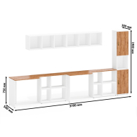 В комплектации 2 классические открытые навесные полки. Каждая разделена на 3 отделения вертикальными перегородками. Навесные полки могут крепиться горизонтально или вертикально, а также использоваться не только в качестве полки, но и как самостоятельный стеллаж, что добавляет вариативности в расстановке мебели.