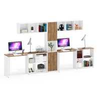 Место для учёбы двоих детей Лидер-8 из письменных столов с полками для книг и пенала - современный и функциональный комплект, идеально подходящий для любого интерьера — это идеальный выбор для тех, кто ценит качество, стиль и функциональность.