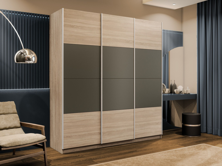 Отзывы о Столплит Шкаф-купе Эста 3-х дверный ДСП/Стекла хаки/Доводчик 270х66х240 Дуб Бардолино