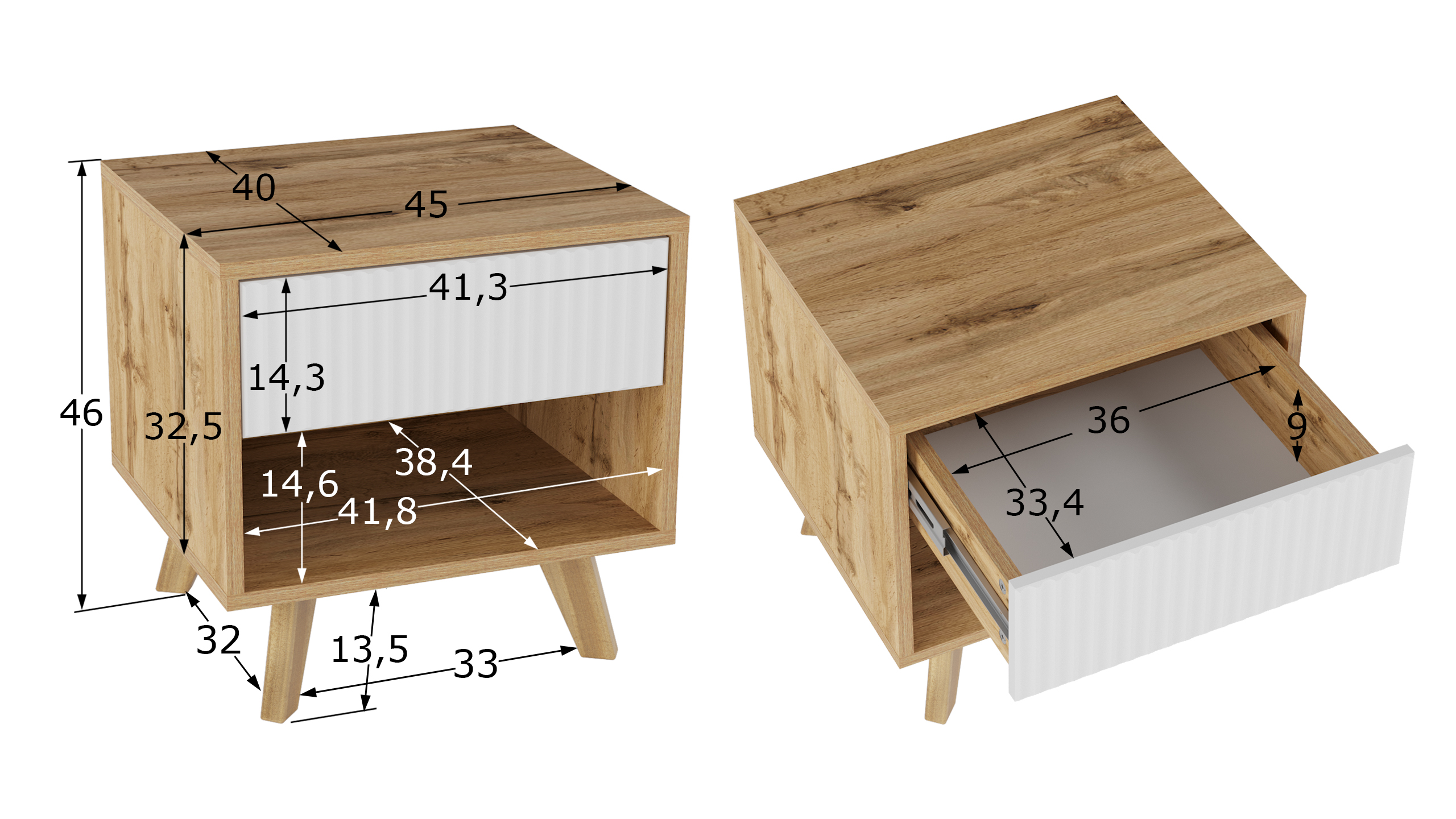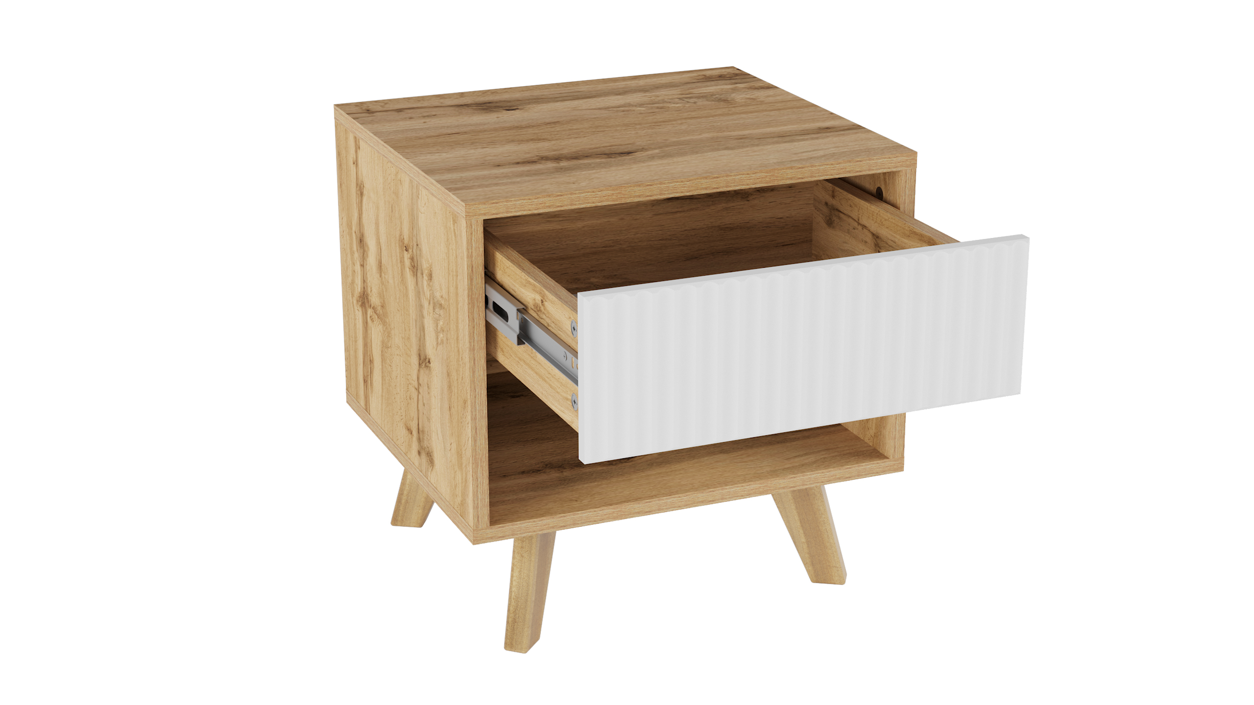 Тумба Хагги в сочетании цветов дуб вотан и белый идеально впишется в любой интерьер спальни, добавляя свежесть и элегантность вашему пространству. Эта тумба, произведенная из высококачественного ЛДСП, известного своей долговечностью и устойчивостью к механическим повреждениям, будет служить вам долгие годы. Тумба на ножках выглядит легкой и изящной, при этом не теряя своей функциональности и удобства в использовании. Белый фасад ящика создаёт утончённый контраст с текстурой древесины дуба вотан, придавая мебели современный и стильный вид. В этой тумбе встроен удобный и просторный ящик, который поможет вам организовать хранение различных мелочей и всегда держать их под рукой. Ее дизайн продуман до мелочей: плавные линии, качественные материалы, надежная фурнитура, благодаря которой ящик легко открывается и закрывается. Тумба Хагги станет не только функциональным элементом обстановки, но и настоящим украшением вашей спальни или гостиной. Эта стильная и практичная тумба подойдет как для классических, так и для современных интерьеров, легко дополняя существующую мебель. Независимо от того, используете ли вы её для хранения книг, ночных ламп или личных вещей, тумба Хагги полностью оправдает ваши ожидания.