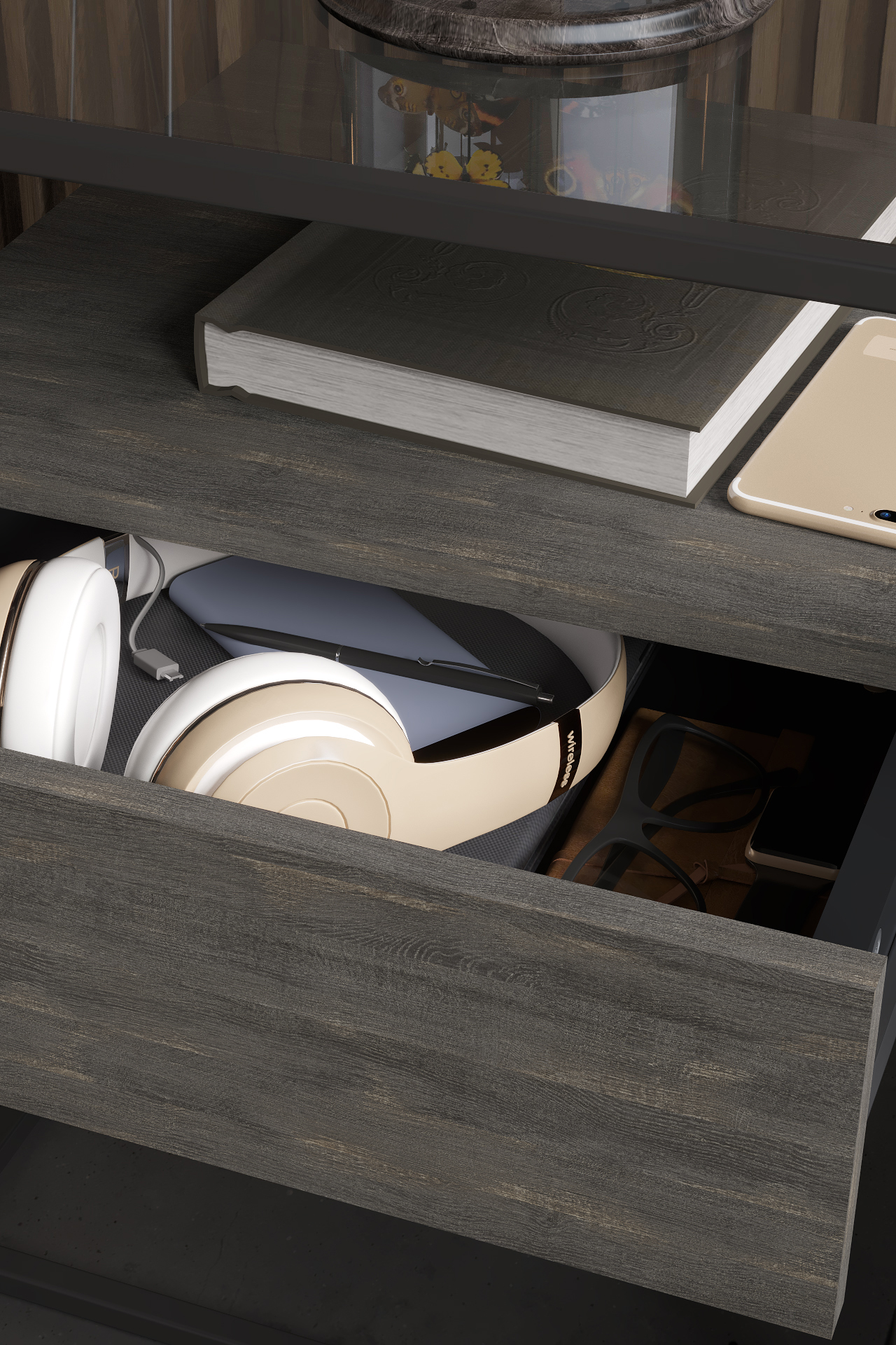 Прикроватная тумба «Эйден» выполнена в современном лаконичном стиле и уместно дополнит интерьер гостиной. Стильная тумба приковывает внимание прежде всего своим исполнением: комбинацией используемых материалов. Стеклянная столешница из тонированного закаленного стекла в сером цвете дополнена полкой и ящиком для удобного хранения подручных вещей с системой открывания PUSH-TO-OPEN. А прочный металлический каркас из профиля толщиной 15 мм обеспечивает высокую прочность и устойчивость. Цветовое решение тумбы можно выбрать из вариантов предложенных нашей фабрикой. Дизайнерский прием - возможность комбинировать с другими предметами интерьера из серии "Эйден" , позволяя воссоздать атмосферу истинного комфорта и удобства.