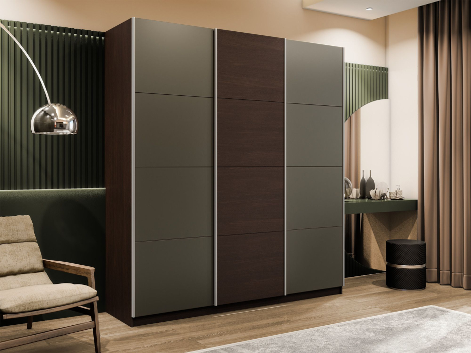 Шкаф-купе Эста 3-х дверный ДСП/Стекла хаки/Доводчик 270х66х240 (Венге мали) Код I0000409024