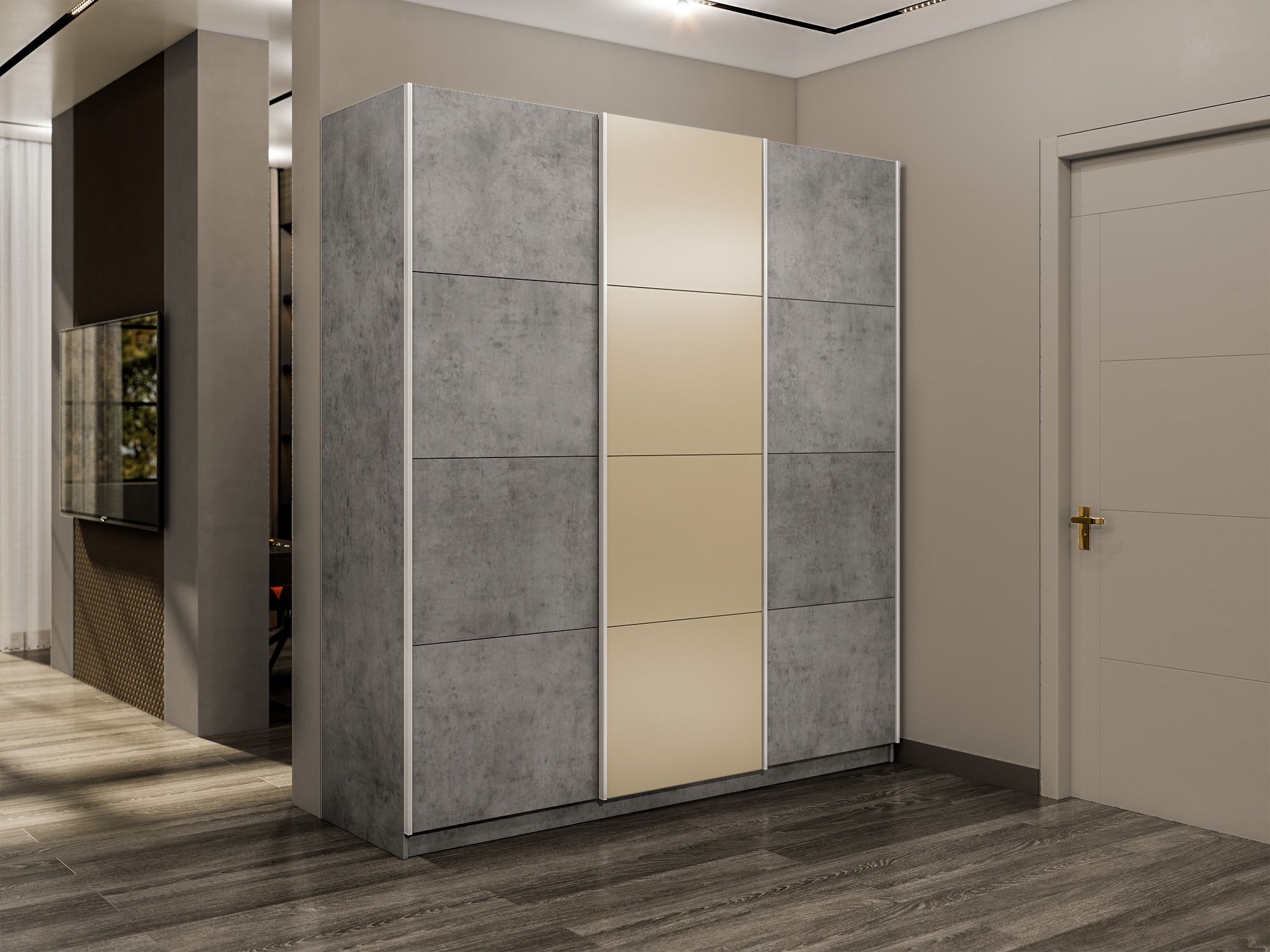 Шкаф-купе Прайм 3-х дверный Стекла фисташка/ДСП/Доводчики 180х57х230 (Бетон) Код I0000409038
