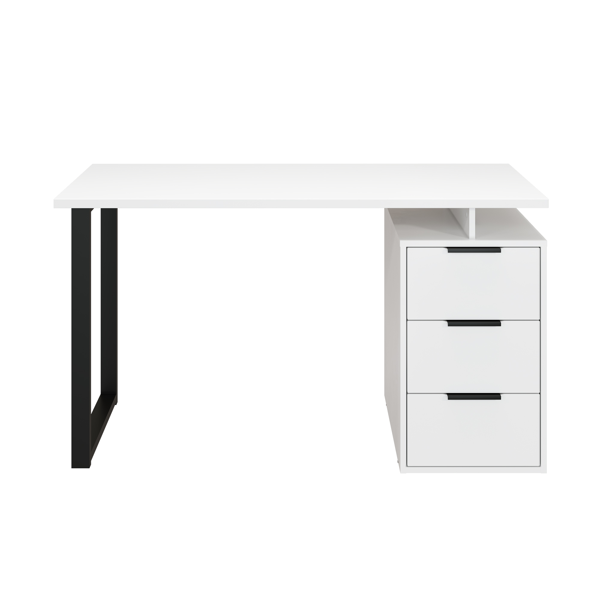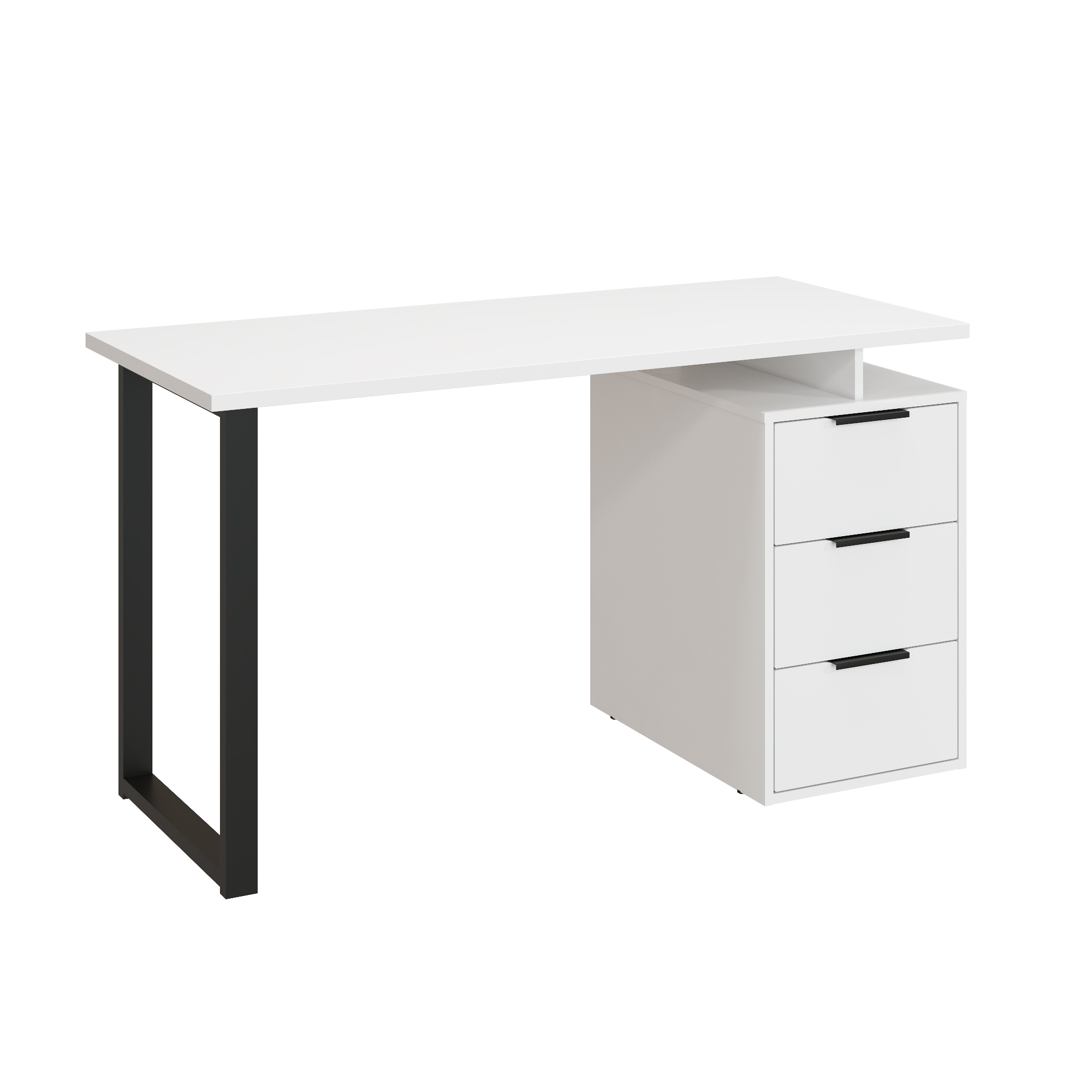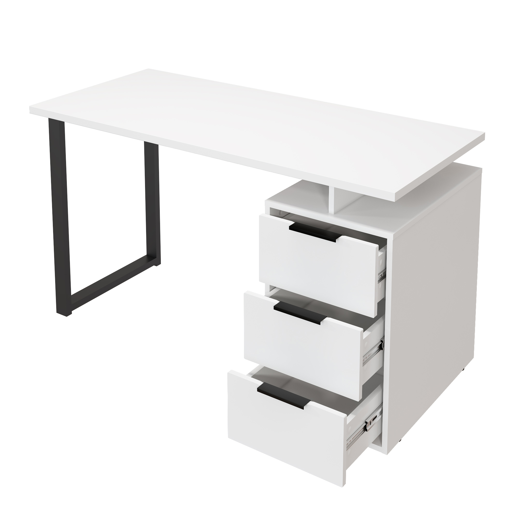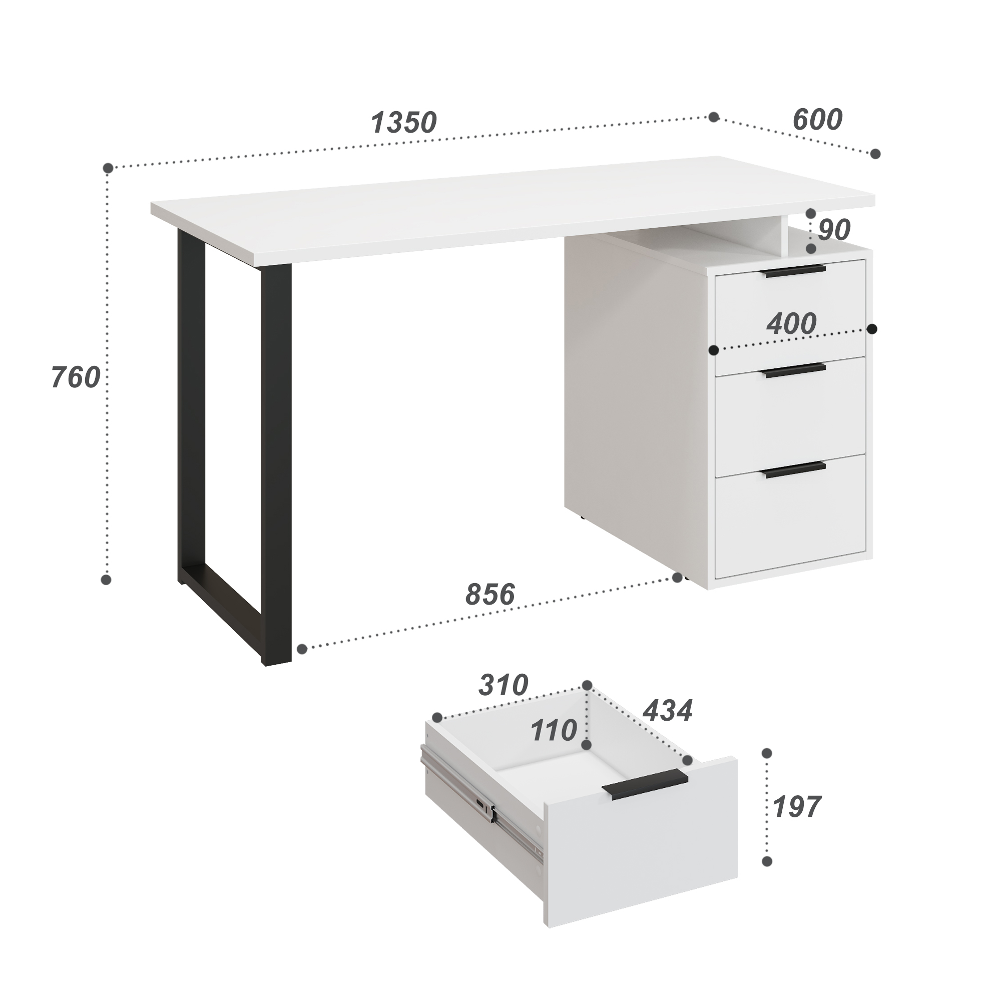 Стол письменный, компьютерный С-406 позволит создать комфортное и стильное рабочее пространство в офисе или домашнем кабинете.. Стол имеет прочную стальную опору и тумбу с тремя выдвижными ящиками и полкой для мелочей Столешница изготовлена из ЛДСП 25 мм, фасады МДФ 16 мм. Дно ящика двп 3 мм. Стол может быть собран в зеркальном варианте «правым» или «левым». Фурнитура: телескопические направляющие полного выдвижения без доводчиков, ручки и опора металл.