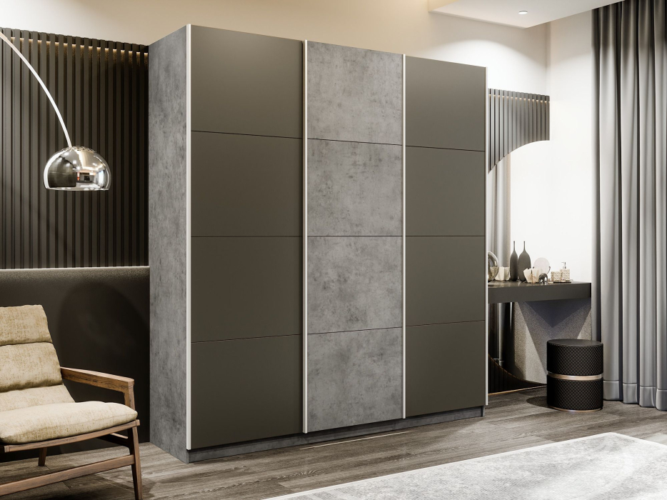 Отзывы о Столплит Шкаф-купе Прайм 3-х дверный Стекла хаки/ДСП/Доводчики 210х57х230 Бетон