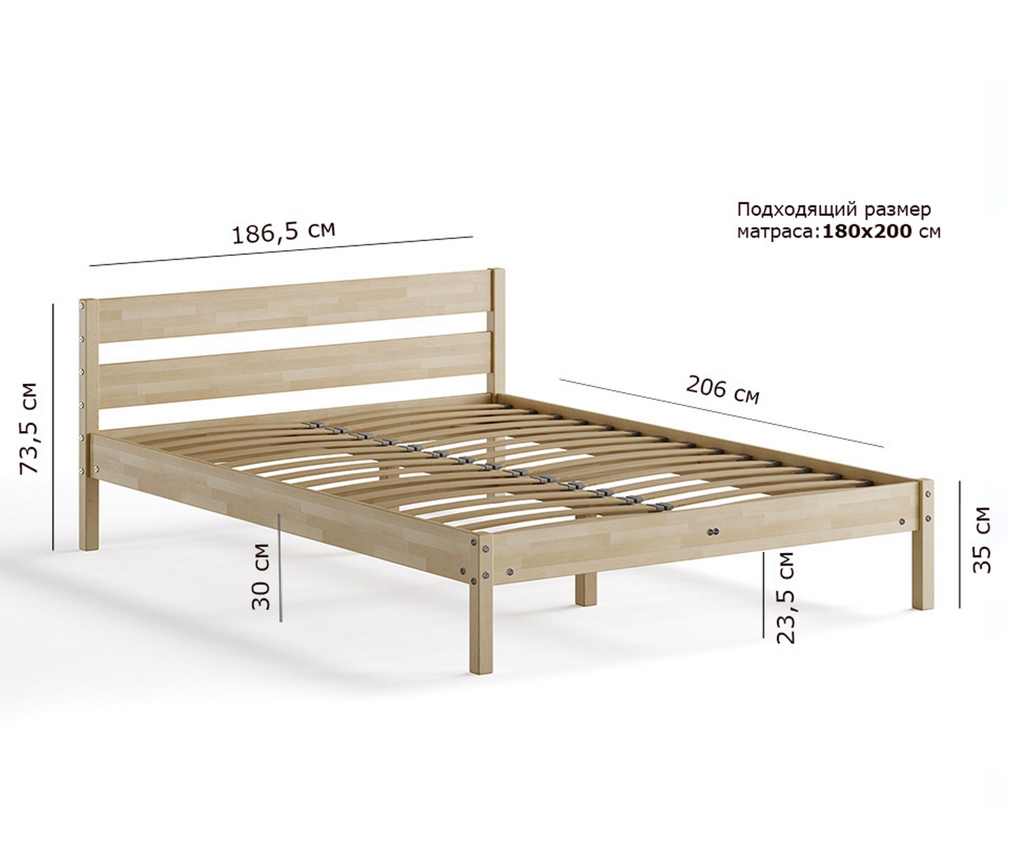 - основание под матрас 1800х2000 мм (прочные гнутоклееные березовые ламели)