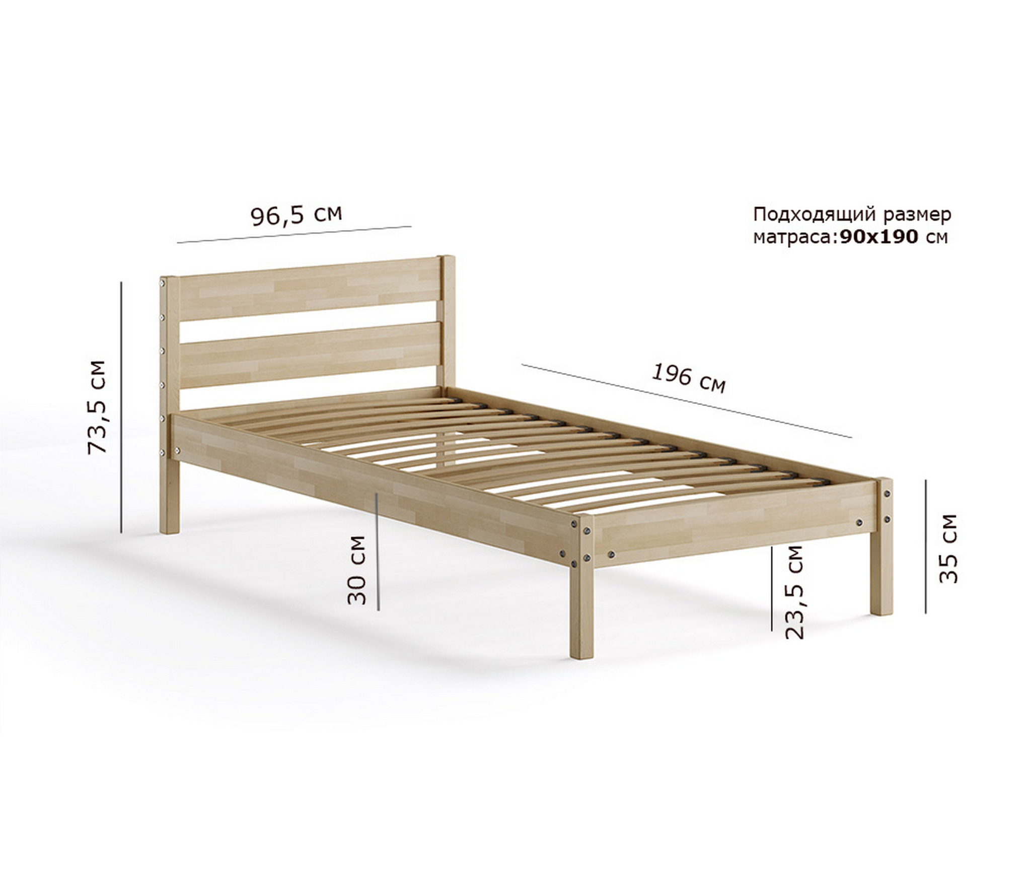 - основание под матрас 900х1900 мм (прочные гнутоклееные березовые ламели)