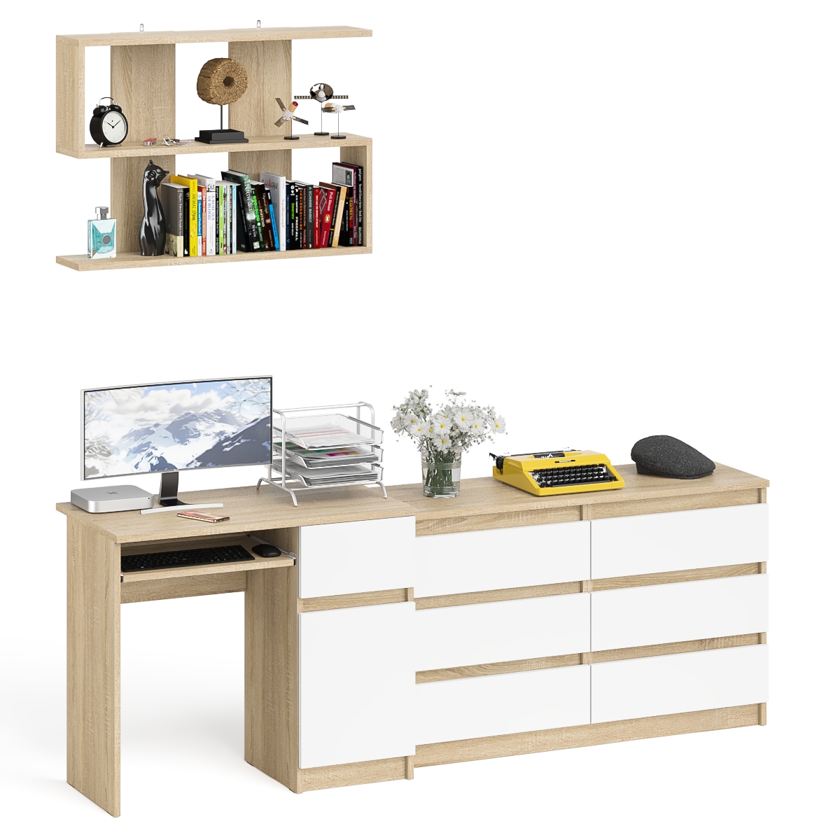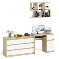 Отзывы о Столплит Широкий комод Мори МК1200.6 с письменным однотумбовым столом МС-1 правый и полкой на 900 Дуб сонома светлый/Белый