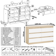 Комод Мори МК1200.6 оборудован шестью выдвижными ящиками, расположенными по три в два ряда. Открывание ящиков и дверей производится за счет пространства между планками и фасадами. Выдвижные ящики на роликовых направляющих L=350 мм. неполного выдвижения обеспечивают комфортную эксплуатацию.
