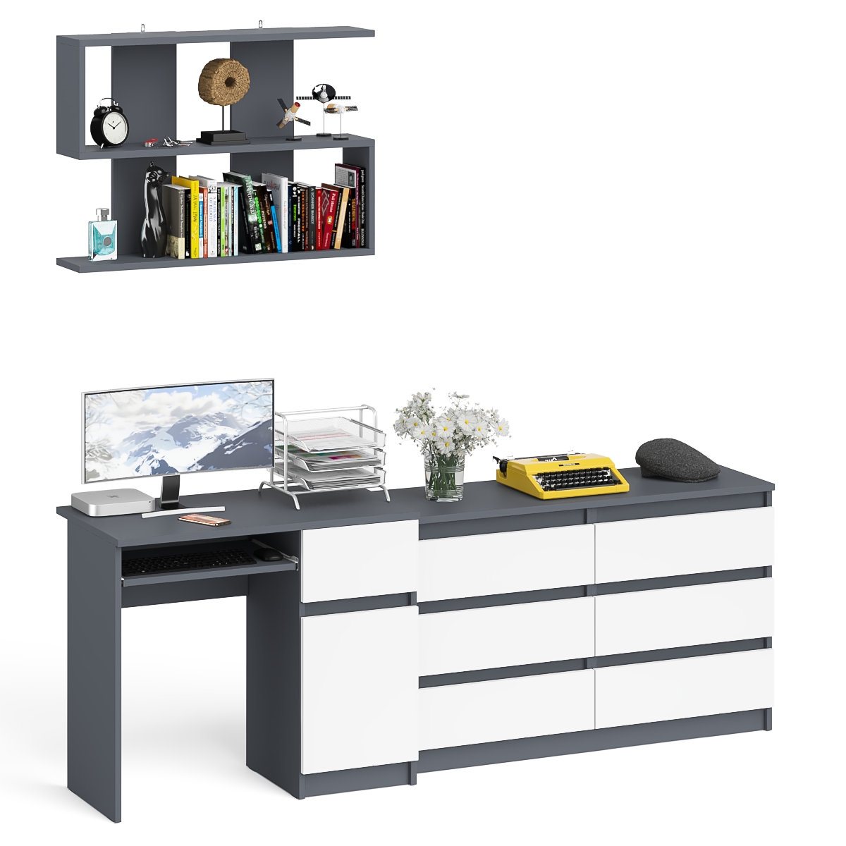 Отзывы о Столплит Широкий комод Мори МК1200.6 с письменным однотумбовым столом МС-1 правый и полкой на 900 Графит/Белый