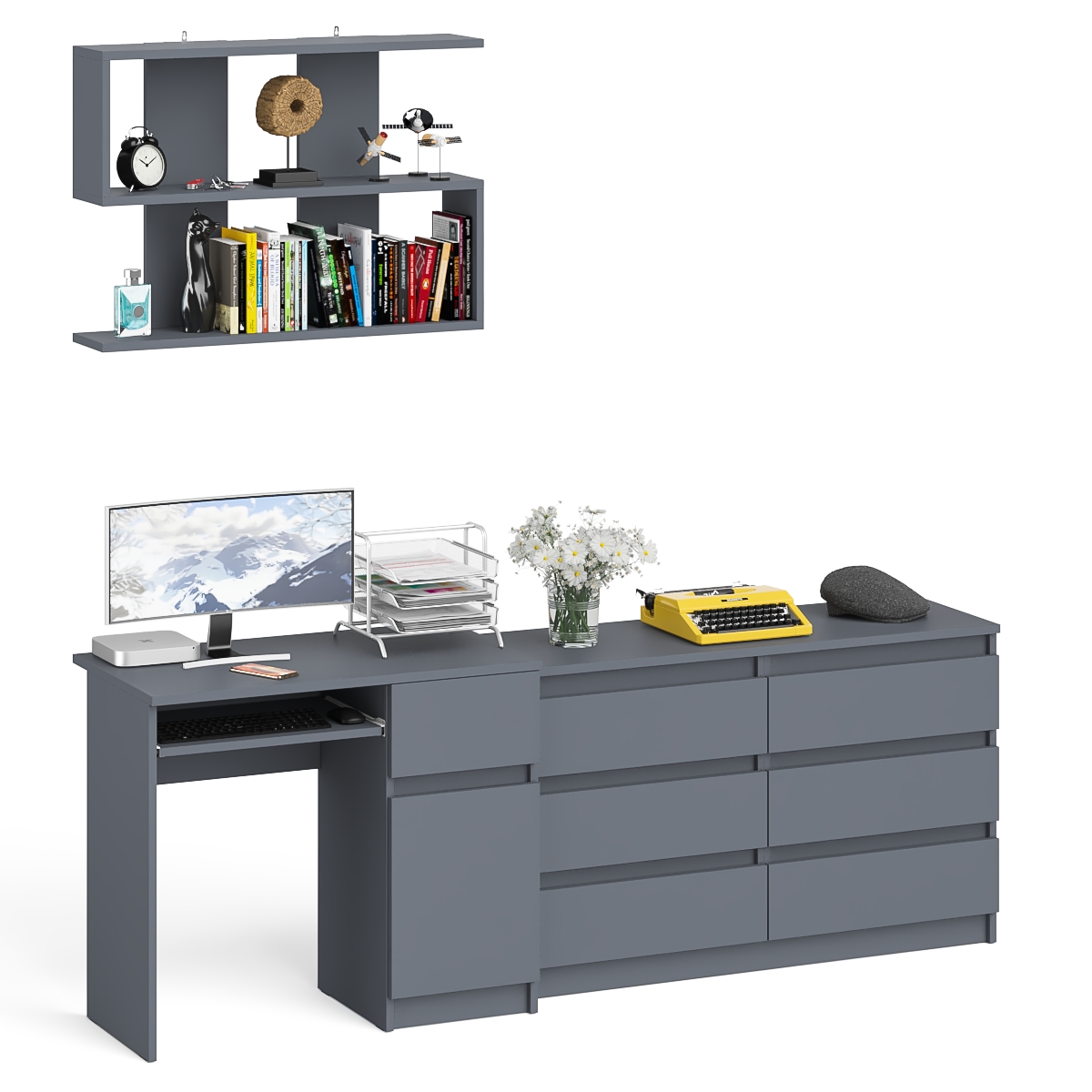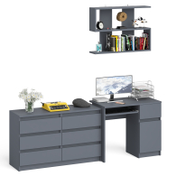 Отзывы о Столплит Широкий комод Мори МК1200.6 с письменным однотумбовым столом МС-1 правый и полкой на 900 Графит