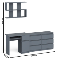 Широкий комод Мори МК1200.6 с письменным однотумбовым столом МС-1 правый и полкой на 900.