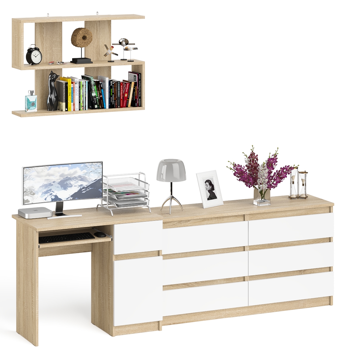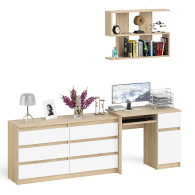 Отзывы о Столплит Комод шесть ящиков Мори МК1380.6 со столом с ящиком и дверкой справа и полка Дуб сонома светлый/Белый
