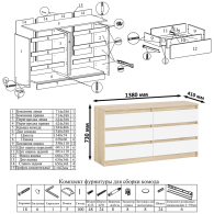 Комод на шесть ящиков Мори МК1380.6 - широкий комод оборудован шестью выдвижными ящиками, расположенными по три в два ряда. Открывание ящиков и дверей производится за счет пространства между планками и фасадами. Выдвижные ящики на роликовых направляющих L=350 мм. неполного выдвижения обеспечивают комфортную эксплуатацию.
