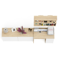 Комплектация включает стол Мори МС-1 правый компьютерный, комод на шесть ящиков Мори МК1380.6 и навесную полку Плк-900.