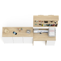 Тумба-комод Мори МК1200.4 с компьютерным столом МС-1 правый и открытой навесной полкой.