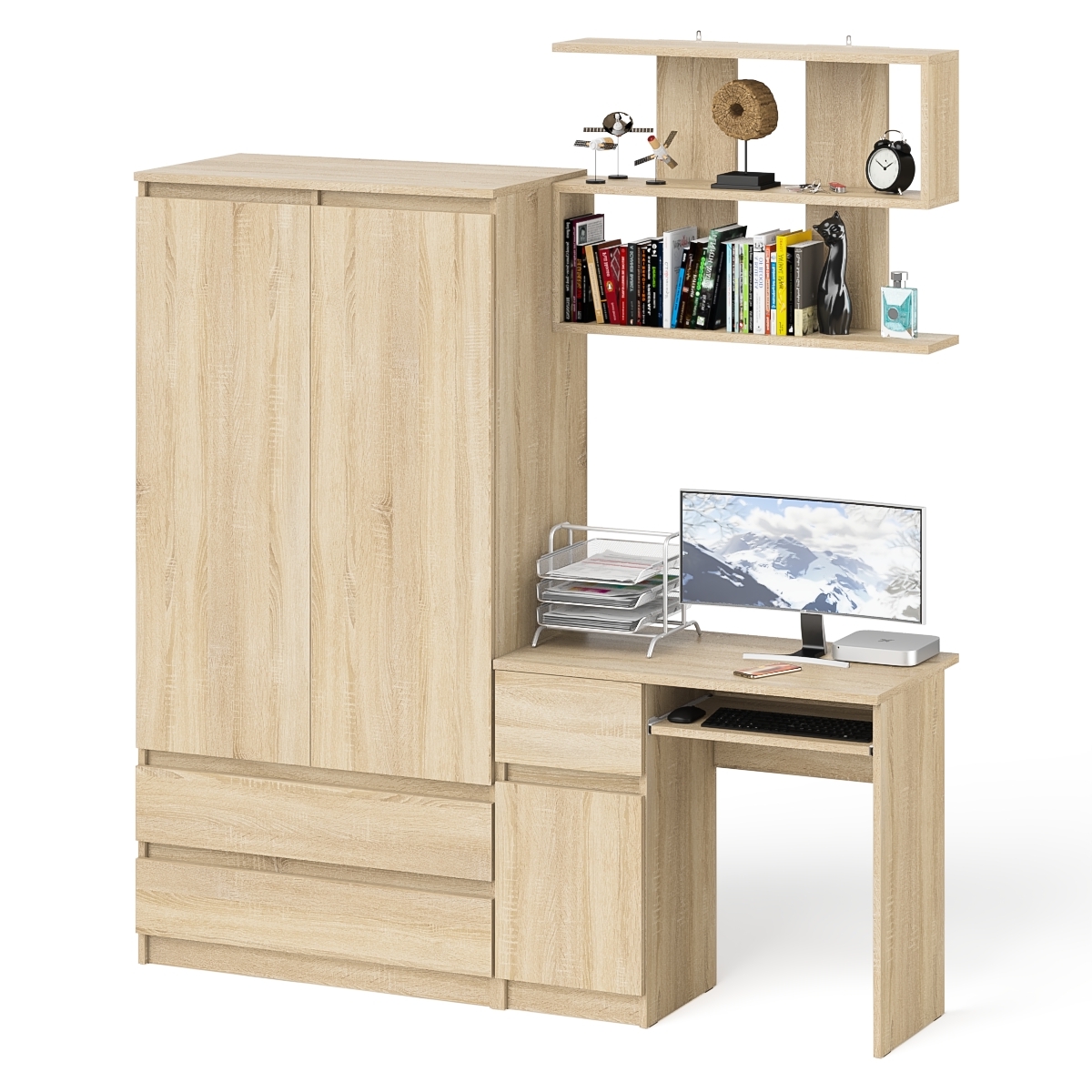Отзывы о Столплит Компьютерный стол Мори МС-1 левый с полкой и шкаф-комодом Дуб Сонома