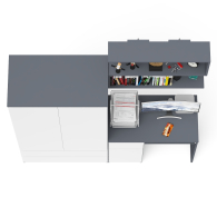 Особенности: ящик слева, выдвижная полка для клавиатуры.