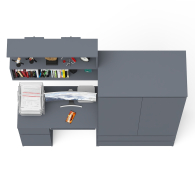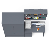 Особенности: ящик слева, выдвижная полка для клавиатуры.