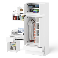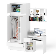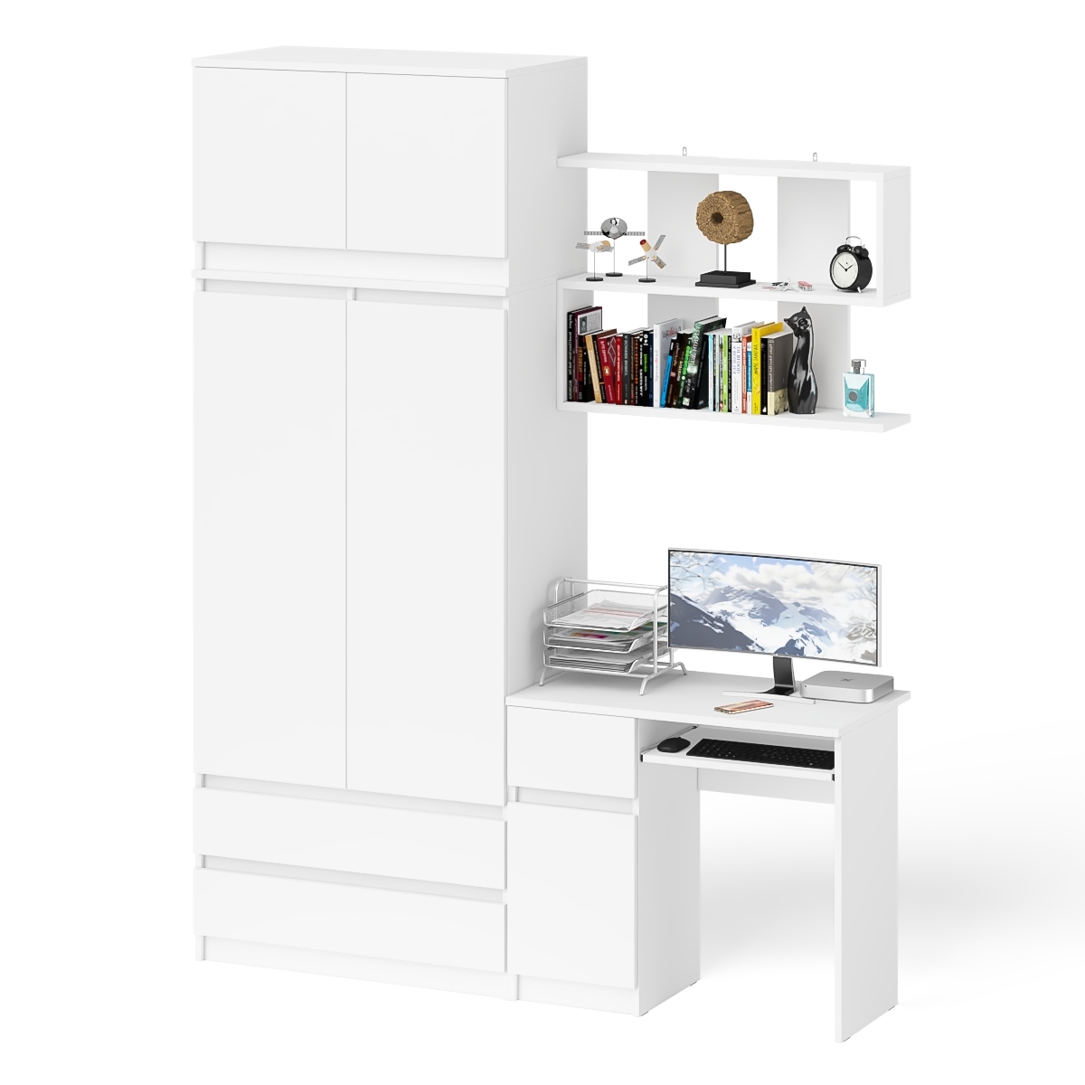 Стол однотумбовый Мори МС-1 левый с полкой навесной и комодом-шкафом с антресолью.