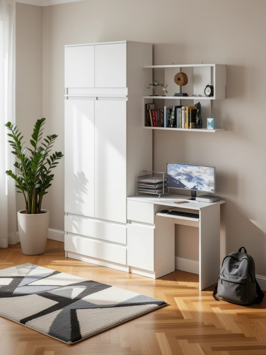 Выполнено в 5 цветах: белый, графит, графит/белый, дуб сонома и дуб сонома/белый.